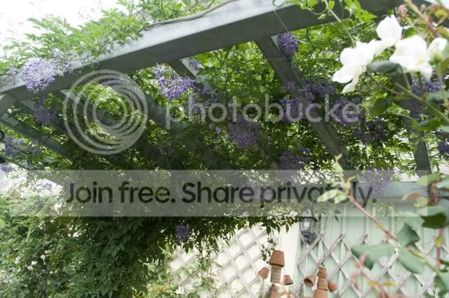良好的開花性和生長,其實有人會問,之前不是玫瑰蔓延上去嗎,事實上玫瑰蔓延上去之後,由於棚架高,花都開在上面(要去樓上欣賞)不像國外可以開到滿成那樣的情況下,下面都只有枝幹跟葉子,加上玫瑰病蟲害管理需要花費教大時間,之前有染介殼等等,於是把終於蔓完成的3年的玫瑰都往下俢,種上懸星花,其實我和各位依樣當時候很不捨,也很懷疑懸星花是否有辦法達到替代的效果,